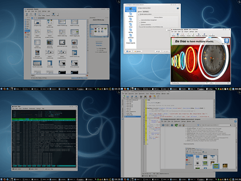 KWin’s desktopgrid visualizes the concept of virtual desktops and makes it easier to remember where you left that window you’re looking for.